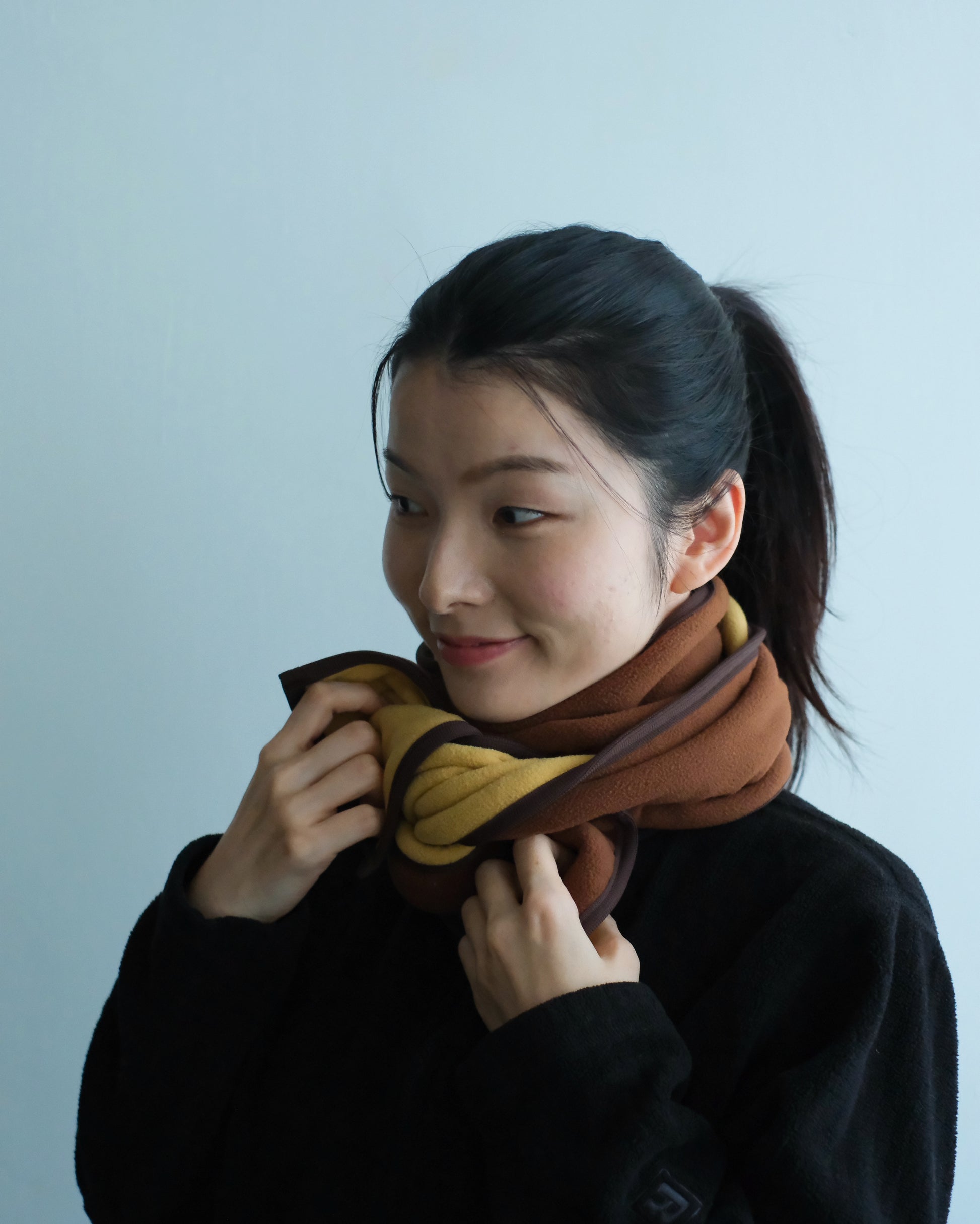 這款雙面抓絨短圍巾採用高防風布料,即使在寒冷天氣也能提供出色的頸部保護。圍巾整體長度經過精心設計,可貼合頸部,減少臃腫感,即使長時間佩戴也倍感舒適。