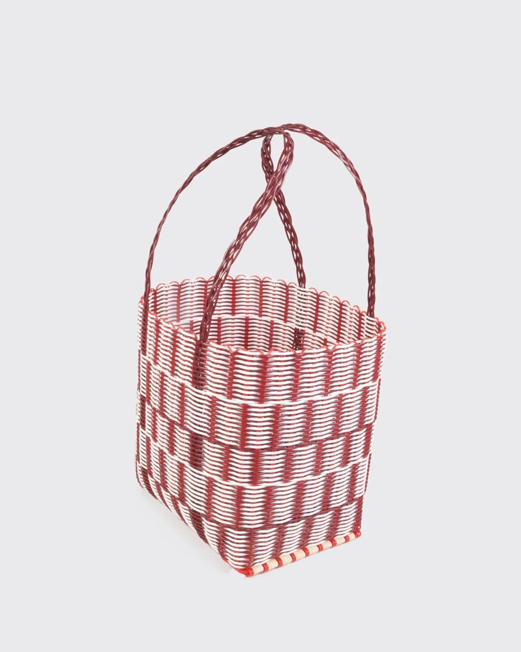 They are woven from 100% plastic (HDPE) strands, using a mix of virgin and post-consumer recycled material. HDPE stands for high density polyethylene and is one of the most widely recycled plastic polymers worldwide. This material makes our baskets waterproof, lightweight, UV resistant and extremely durable.